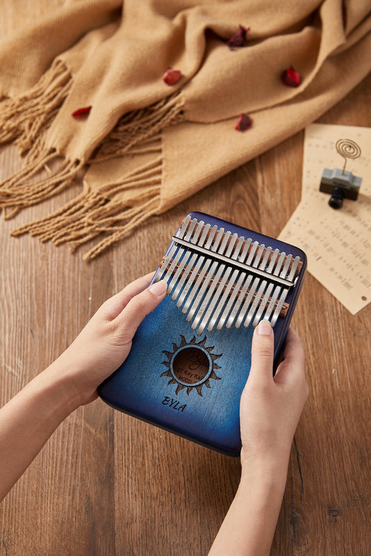 Cega Authentic 17 Keys Kalimba African Mahogany Wood Thumb Piano - Sun Blue
