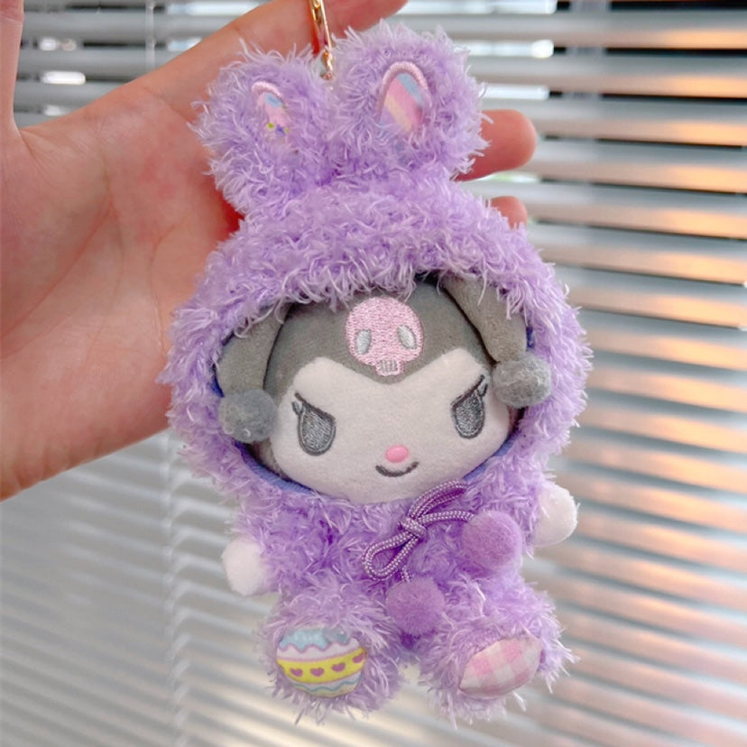 Each character is dressed in their own unique, colorful bunny costume, complete with playful bunny ears and intricate stitching details.