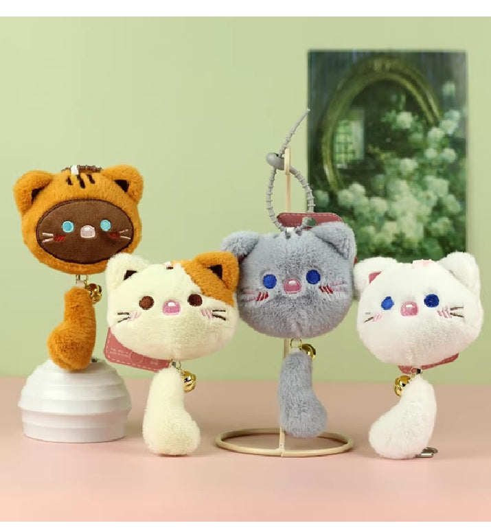 arry a dash of "purr-fection" wherever you go! These ultra-soft, 15cm kitty keychains feature a charming round face and a long, wagging plush tail. Complete with a golden bell that jingles softly and a flexible beaded loop, they are the ultimate cute companion for your keys, backpack, or tote.