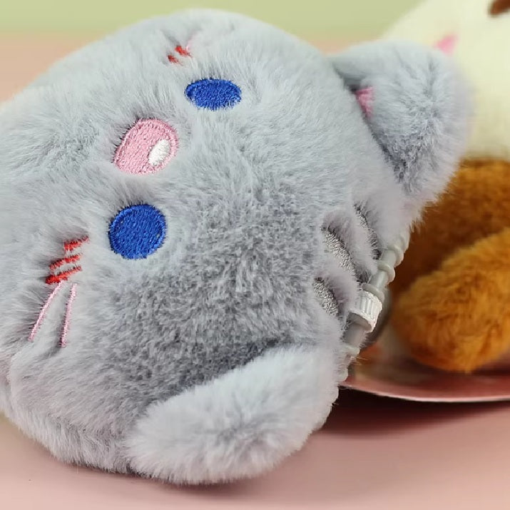 - Cool Grey: A sleek, misty grey plush with striking sapphire blue eyes.